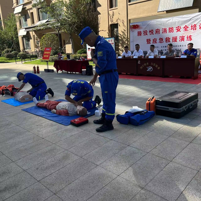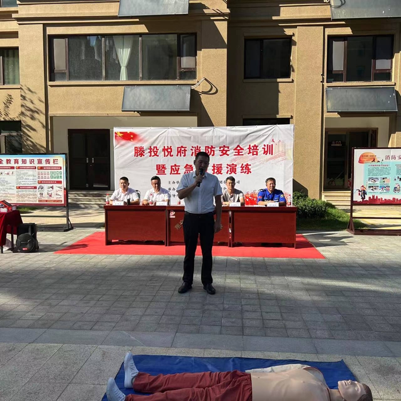 中秋國慶雙節將至,為進一步提升節日期間消防應急救援能力,確保滕投集團各下轄小區度過一個安全穩定、歡樂祥和的佳節。9月21日下午,集團萬德物業公司聯合滕投悅府物業服務中心開展第三季度物業消防綜合演練活動。活動邀請了北辛街道文化路社區領導、滕州藍天救援隊救援人員、集團下轄14個物管項目經理和安全專員共計80余人參加活動。